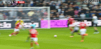 第45+1分钟,纽卡斯尔联队连续射门,托纳利射门偏出